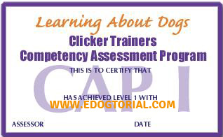El entrenamiento con clícker con titulación CAP (Competency Assessment Program), Programa de Evaluación de Competencias ha sido introducido por Kay Laurence de Learning About Dogs debido a la necesidad existente de construir un programa de enseñanza que incorpore una clara ruta de aprendizaje con una estructura basada en los mejores protocolos de entrenamiento canino. El programa asegura una alta calidad en la enseñanza, reconocimiento de los objetivos alcanzados y una estructurada ruta de estudio con el apoyo de un profesor.